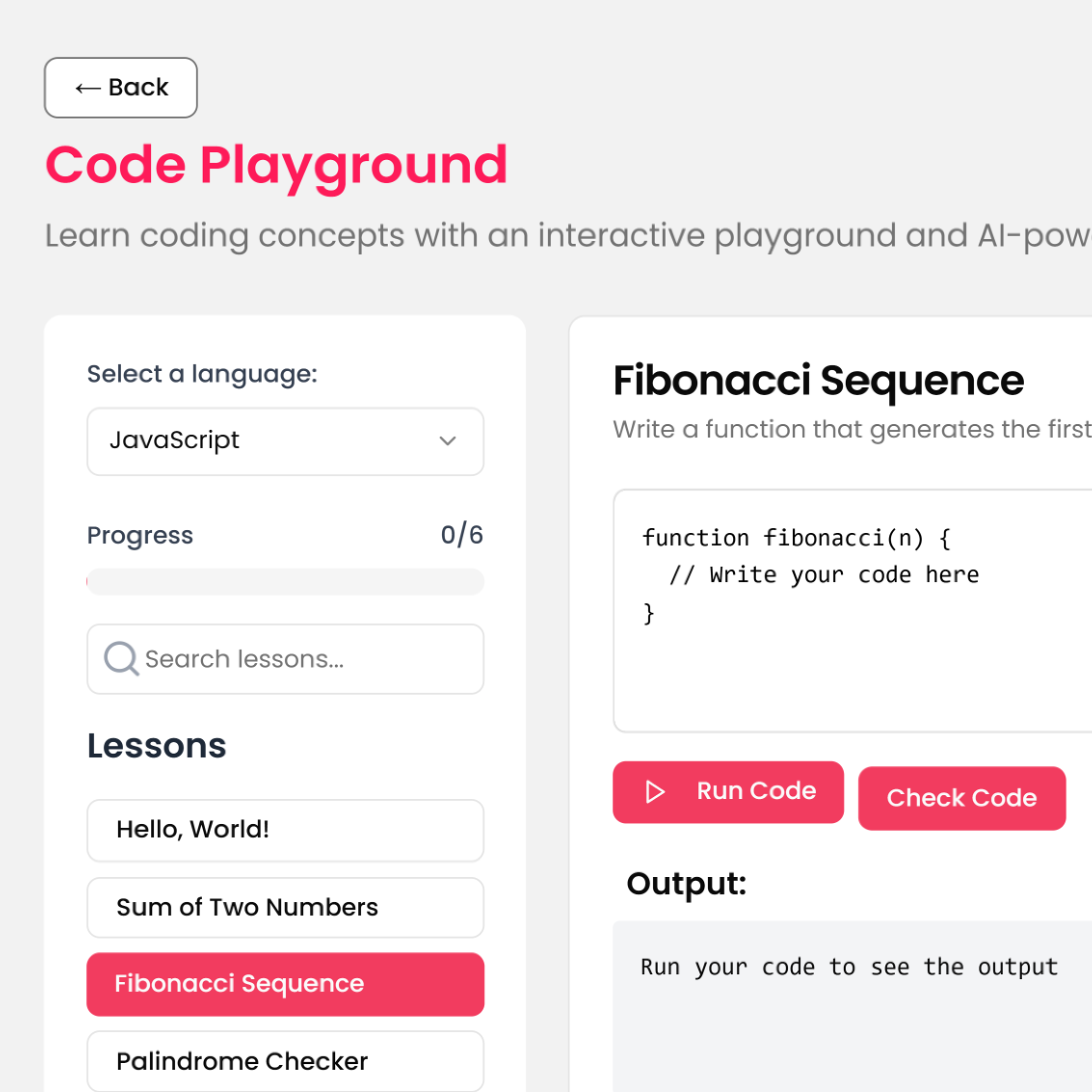 Learn coding concepts with an interactive playground and AI-powered guidance for better understanding.