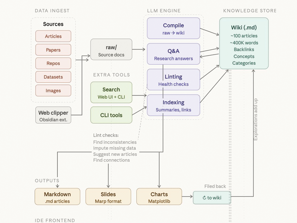 Andrej Karpathy — co-founder of OpenAI, former AI lead at Tesla, and the person who coined "vibe coding" — has shared a significant shift in how he uses LLMs. He is now spending more of his token budget building structured, persistent knowledge bases than generating code. The workflow is simple in architecture but profound in implication.