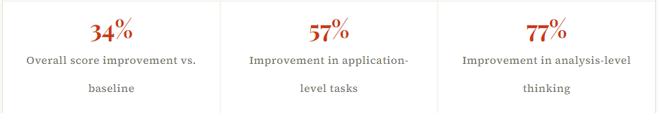 In February 2026, the results from a structured intervention in a Grade 7 mathematics classroom were documented and published. The 34% improvement in final class scores compared to the baseline assessment. 57% improvement in application-level cognitive tasks. 77% improvement in analysis-level cognitive tasks—the tasks that measure what students can do independently, under examination conditions, without any AI assistance.