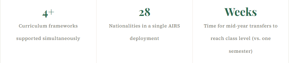 The institutional memory problem is one of the most underacknowledged challenges in international schooling. Every student's knowledge state, learning style, interaction history, and progress trajectory lives in AIRS – so a new teacher inheriting a class doesn't start from scratch. They start from a complete, continuously updated picture of every student they are about to teach.