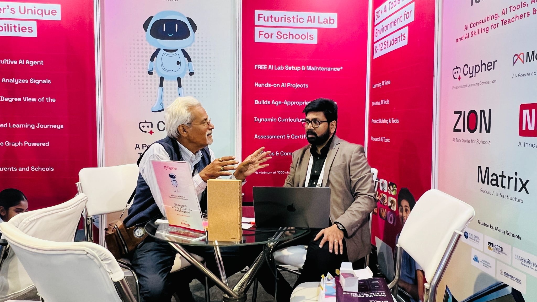 Rishab Kumar's visit exemplified the quality of engagement we were receiving. He hadn't stumbled upon our stall randomly; he had reviewed the list of participating companies, specifically selected AI Ready School, and sought us out. An individual with strong school connections and investor interests, Kumar wanted to schedule detailed meetings beyond the expo. This wasn't casual interest—it was strategic recognition.