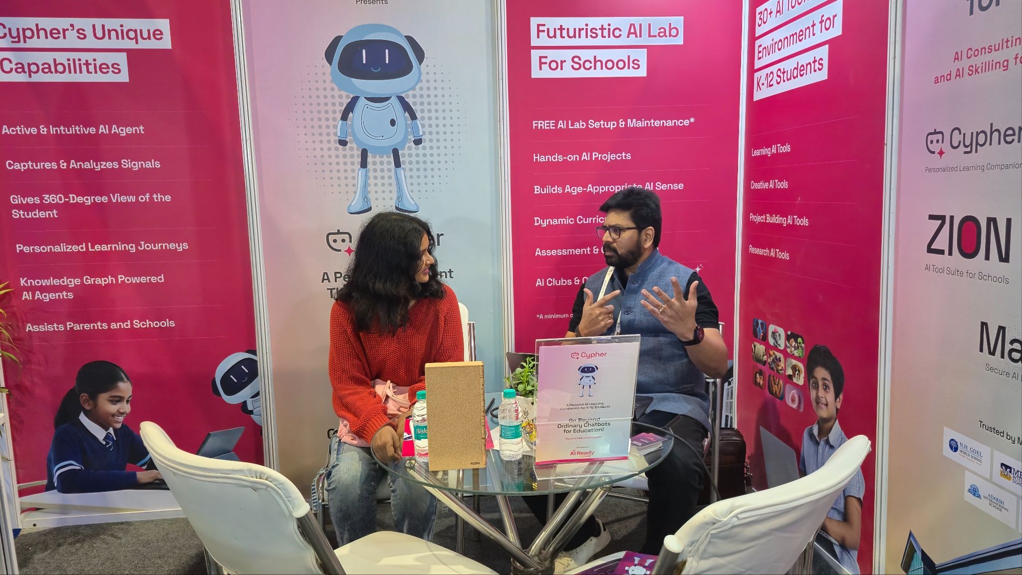 Throughout the expo, visitors didn't just interact with our platform; they connected with Cypher. The AI learning companion had become the friendly face of AI Ready School, the approachable entry point into sophisticated educational technology, the guide that students could imagine learning alongside.