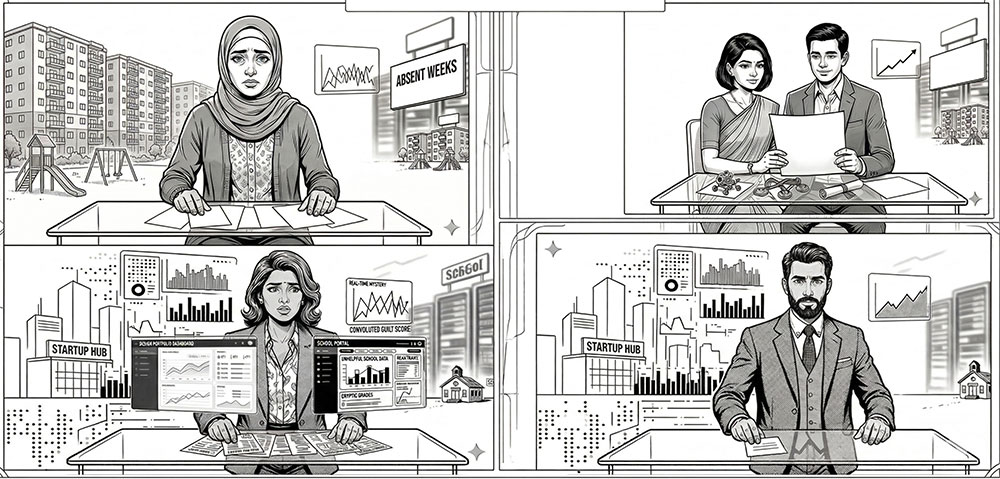 Preethi is a UX designer who can read any dashboard — except the ones her daughter's school provides, which tell her almost nothing. AIRS finally gives her the clear, real-time picture of Kavya's learning she has been looking for since Grade 3.